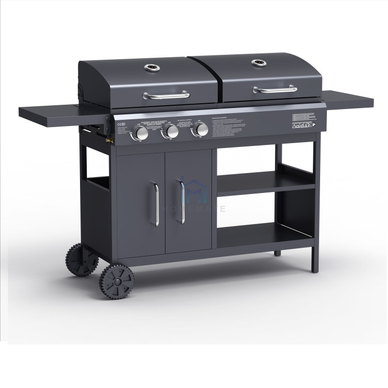 3-Burner Gas & Charcoal Outdoor Grill With Foldable Side Table